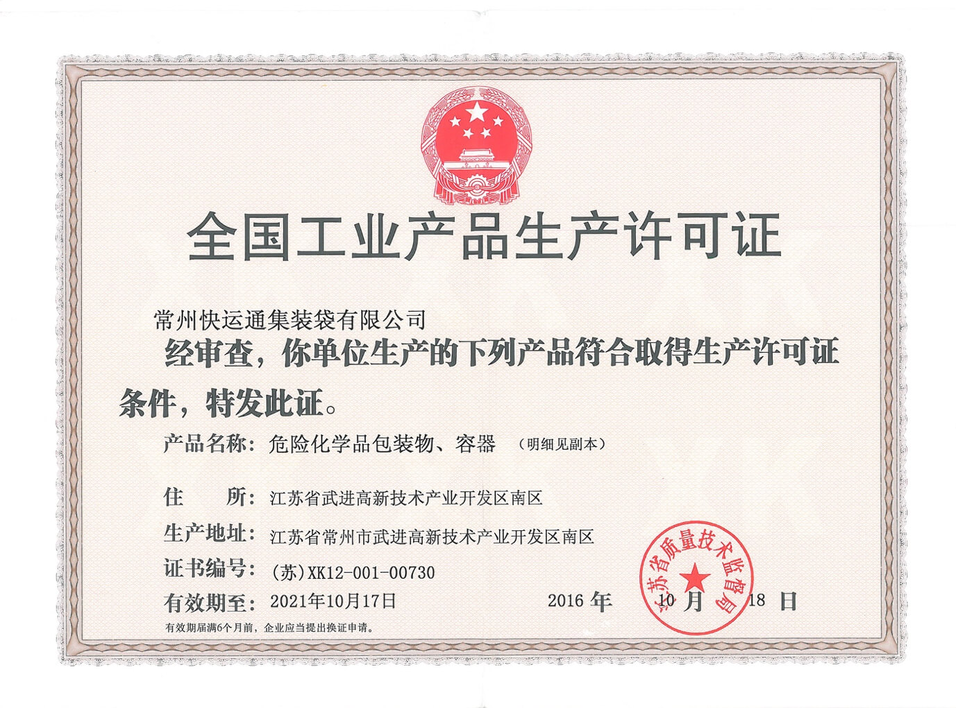危險品包裝生產(chǎn)許可證